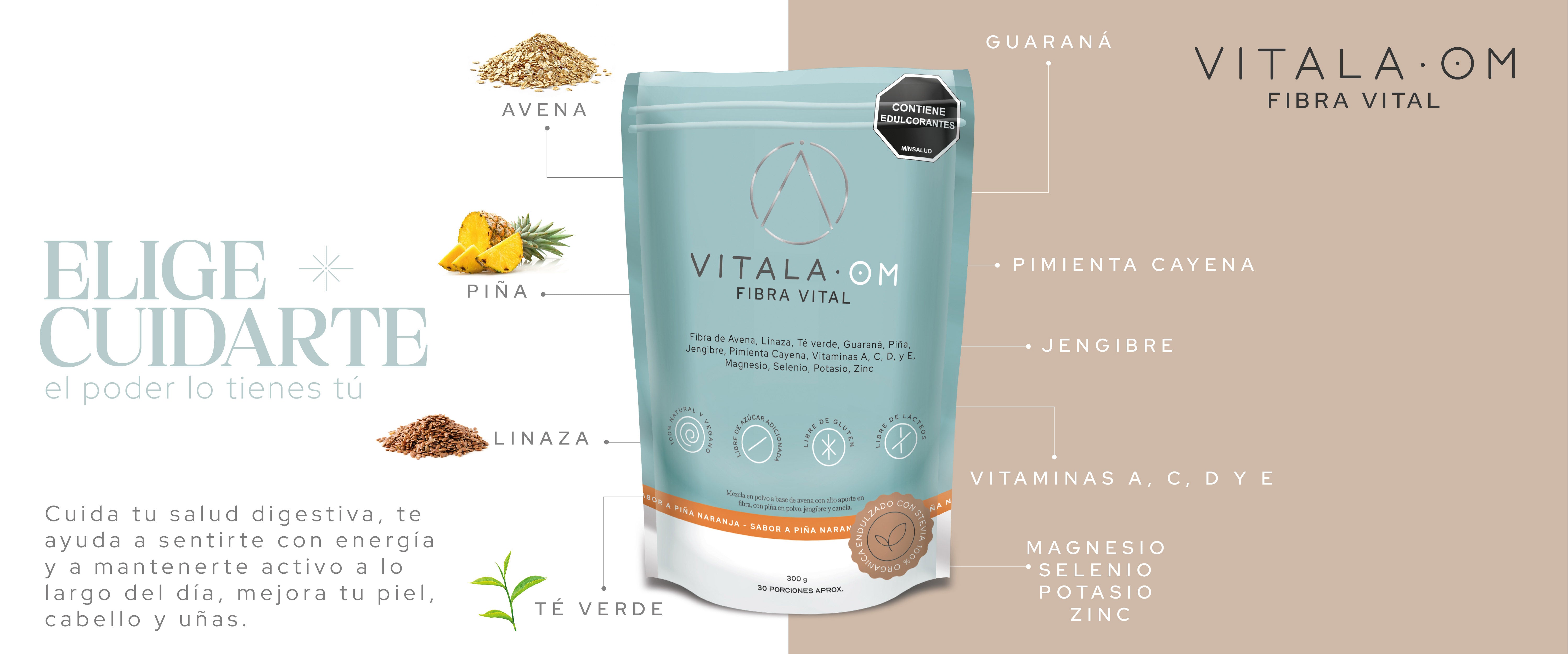 1 taza de avena, 🥚2 huevos 🥄2 cucharadas de Vitala Om Fibra Vital 🥛1 taza de leche 🧈mantequilla derretida 🍦unas gotas de esencia de vainilla